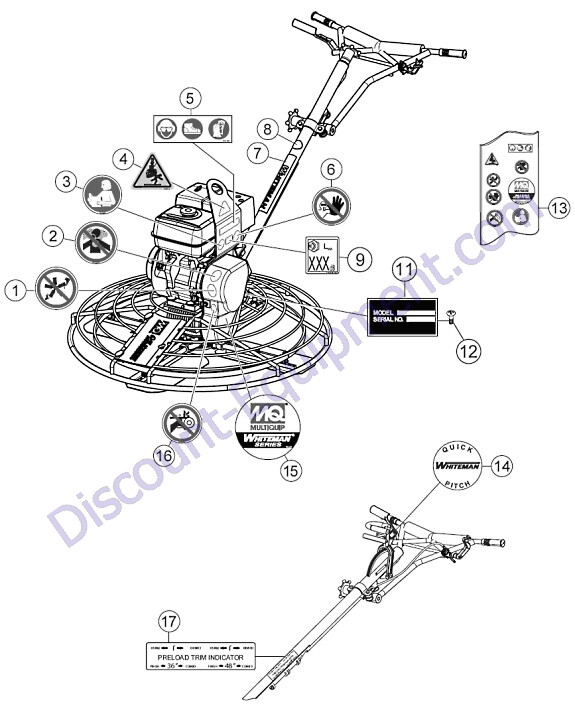REF #14 - 12405 DECAL WHITEMAN QUICK PITCH Multiquip Whiteman JH55C JH90C JS60C Walk-Behind Trowel