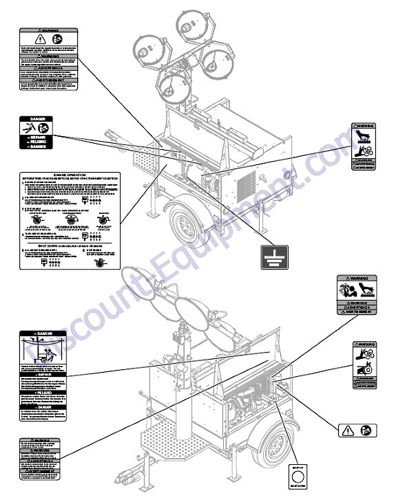 33953 Safety and Operating Decals Generac Magnum MLT5060MV-MLT5060KV-MLT5080KV Light Tower